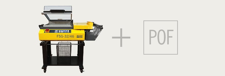 Für Haubenschrumpfgeräte empfehle ich ausnahmslos die Verwendung von POF-Feinschrumpffolie: Diese Maschinenart arbeitet mit niedrigerer Betriebstemperatur als die übrigen Geräte, kann deshalb nur Polyolefin-Folienrollen einschrumpfen und gleichzeitig saubere Schweißnähte erzeugen.